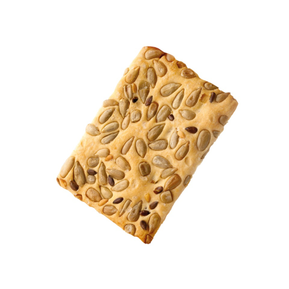 Ingredients: WHEAT flour, 80% vegetable margarine (refined deodorized vegetable oils and fats: palm oil in various fractions; emulsifiers: distilled monoglyceride, polyglycerol ether, sunflower lecithin; preservative: potassium sorbate; butter flavoring; color E160a), salt, baking powder (wheat starch, baking powder: sodium pyrophosphate, baking soda), acidifier: citric acid, sunflower seeds, FLAX seeds, SESAME seeds.