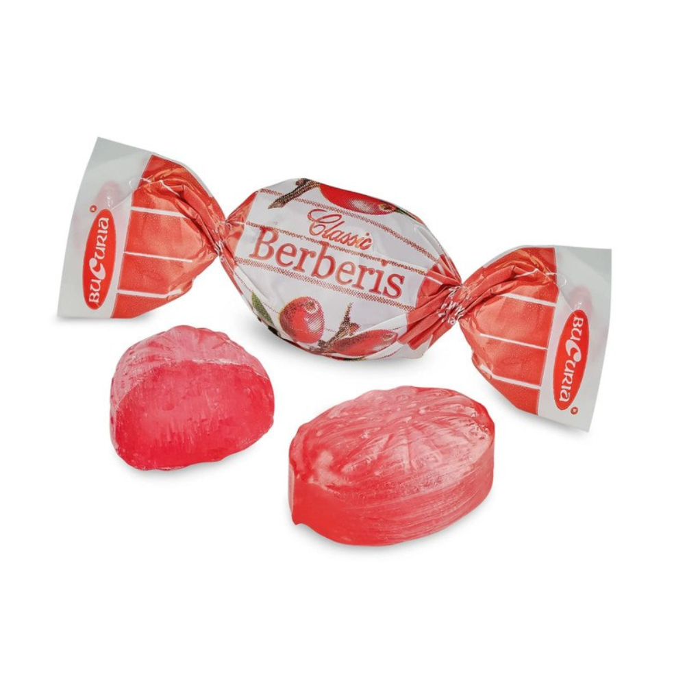 Ingredients: sugar, glucose syrup, acidity regulator: citric acid, "Barberry" flavor, barberry extract – 0.1%, color: anthocyanins.