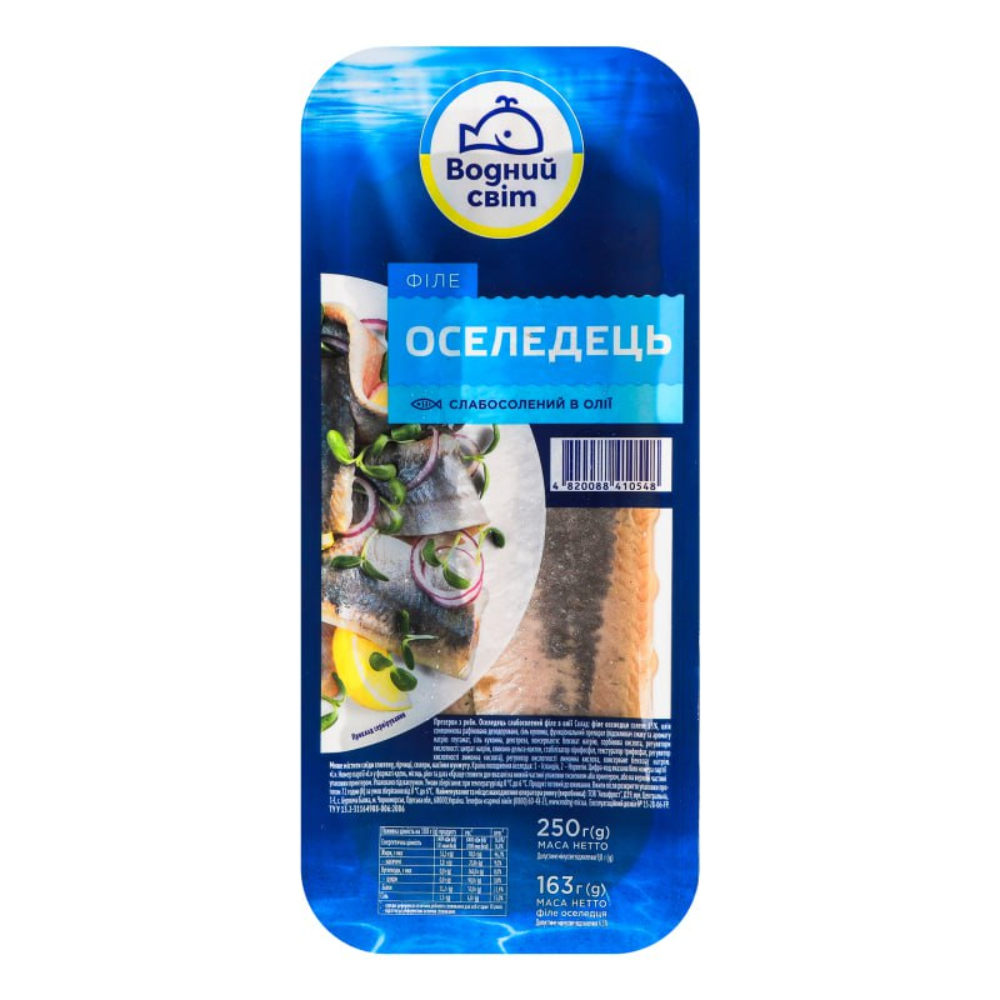 Net weight: 250 g. Weight after draining liquid (herring fillet): 163 g.