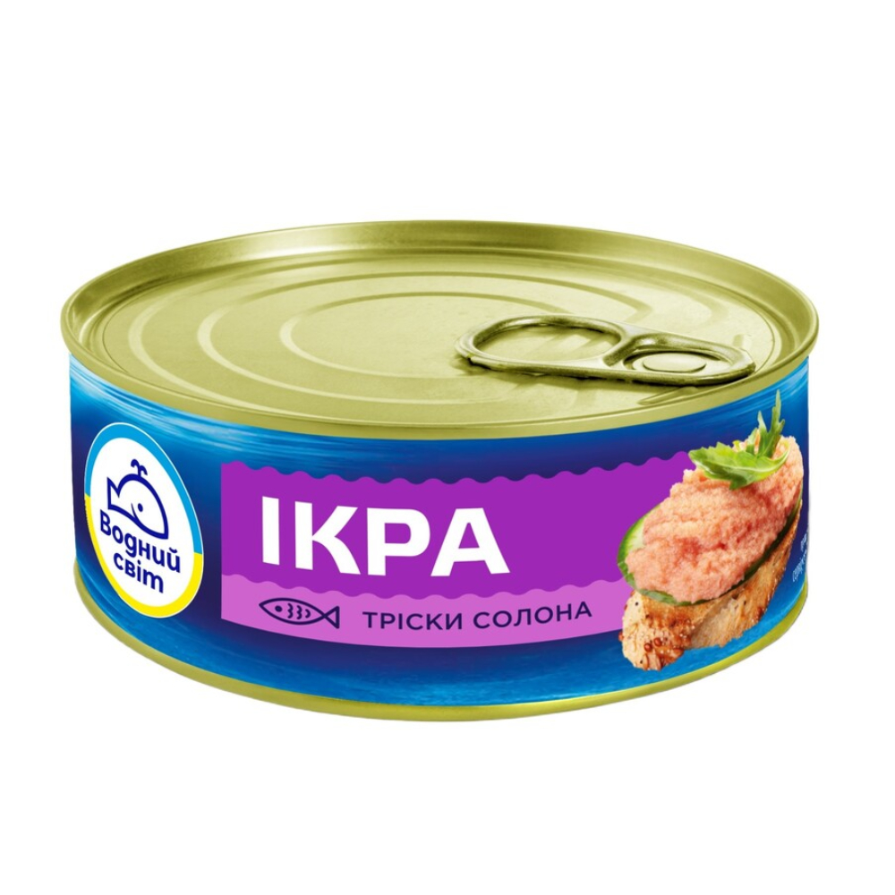 Ingredients: **cod caviar („Gadus morhua“) ** salted 95% (**cod caviar („Gadus morhua“) ** 97%, salt 3%), refined deodorized sunflower oil, salt, white sugar, flavor enhancer sodium glutamate, acidity regulators: calcium lactate, sodium citrate, antioxidant E301, preservatives: sorbic acid, sodium benzoate.