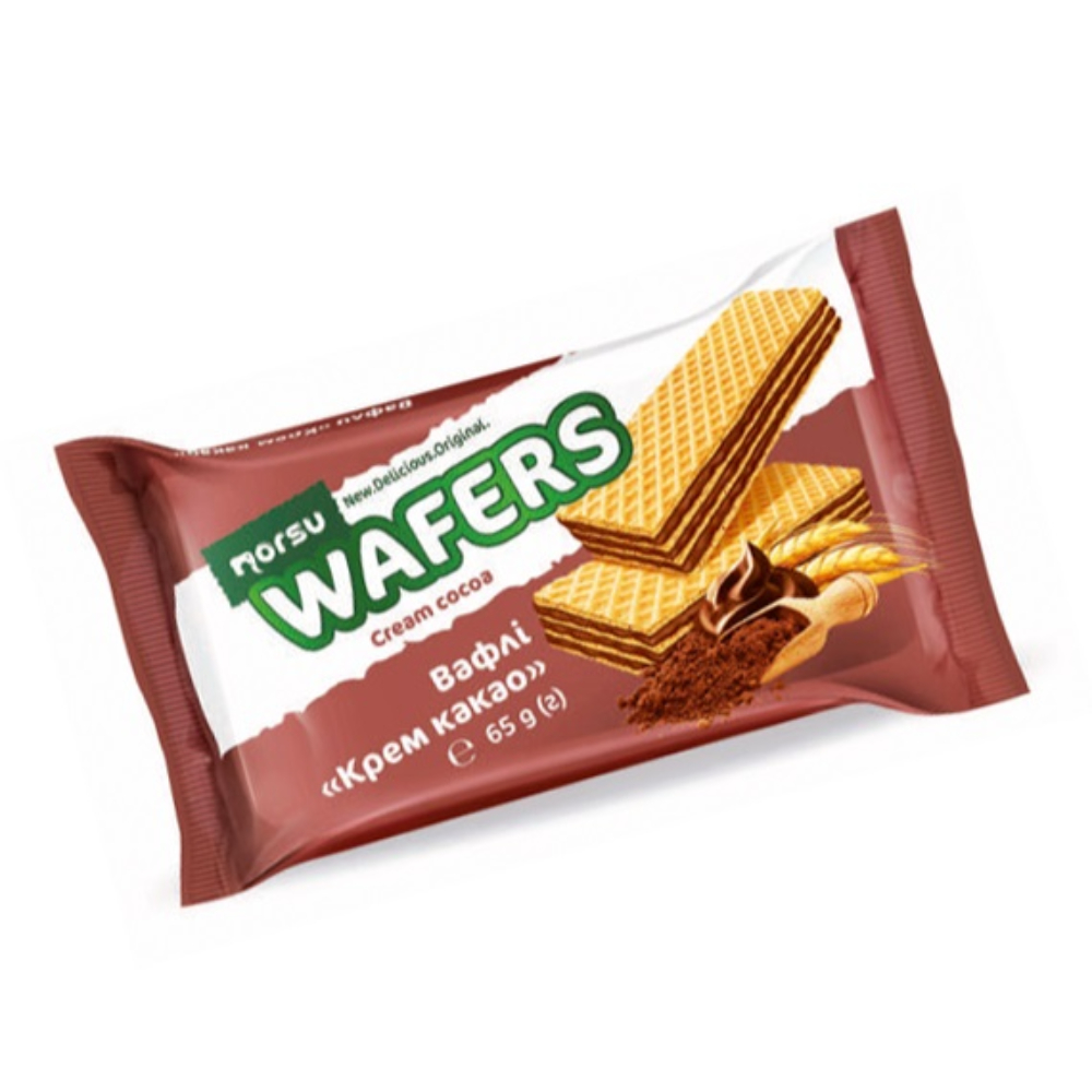 Ingredients: Premium WHEAT FLOUR, sugar, confectionery fat (refined, bleached, and deodorized vegetable oils and fats: palm oil and its fractions in modified proportions, emulsifier: sunflower lecithin (E322), antioxidants: E304(i), E306), low-fat cocoa powder, SKIMMED MILK POWDER, rice flour, emulsifier: SOY LECITHIN (E322), EGG POWDER, salt, raising agent: sodium hydrogen carbonate (E500ii), flavorings: "Cocoa", "Vanilla"; preservative: sorbic acid (E200).