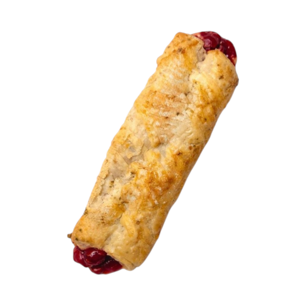Ingredients: dough (WHEAT flour for bread production; drinking water; refined bleached deodorised vegetable oils: palm oil and its fractions, sunflower oil in variable proportions; emulsifier: distilled monoglycerides; flavouring “Butter”; antioxidants: ascorbyl palmitate, mixture of tocopherols); refined deodorised sunflower oil; sugar; iodised salt; corn starch; improver (inactivated baker’s yeast, WHEAT flour); heat-stable filling 42% (frozen cherries, crystalline sugar, drinking water, modified starch, gelling agent: pectin, gelling agent: gellan gum, preservative: potassium sorbate, acidity regulator: sodium citrate, acidity regulator: citric acid, flavouring “Cherry”, nature-identical, colourants E124 and E122); glaze (drinking water, vegetable proteins, vegetable oil, dextrose, maltodextrins, corn starch). Contains: GLUTEN. Attention! Cherry stones may be present. Contains colourants E122 and E124, which may have an adverse effect on activity and attention in children. Nutrition declaration per 100 g of product: Energy: 1208.1 kJ / 287.6 kcal; Fat: 11.3 g, of which saturates – 2.9 g; Carbohydrate: 42.0 g, of which sugars – 13.4 g; Protein: 4.3 g; Dietary fibre: 0.7 g; Salt: 0.7 g.