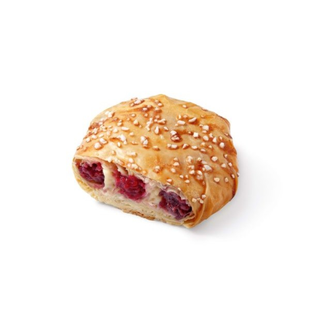 Состав: тесто (пшеничная мука высшего сорта (ГЛЮТЕН), питьевая вода, рафинированное подсолнечное масло, поваренная соль), начинка (замороженная вишня – 17%, яичный крем (вода, сахар, СУХОЕ МОЛОКО, модифицированный кукурузный крахмал, лимонная кислота, ароматизатор ваниль, стабилизатор: пектин), растительные жиры (рафинированное пальмовое масло), сливки, СУХАЯ МОЛОЧНАЯ СЫВОРОТКА, эмульгаторы: моно- и диглицериды жирных кислот, СОЕВЫЙ ЛЕЦИТИН, антиоксидант: альфа-токоферол, краситель: бета-каротин, экстракт черного перца). Может содержать следы ЯИЦ, СОИ, СУСАМА.