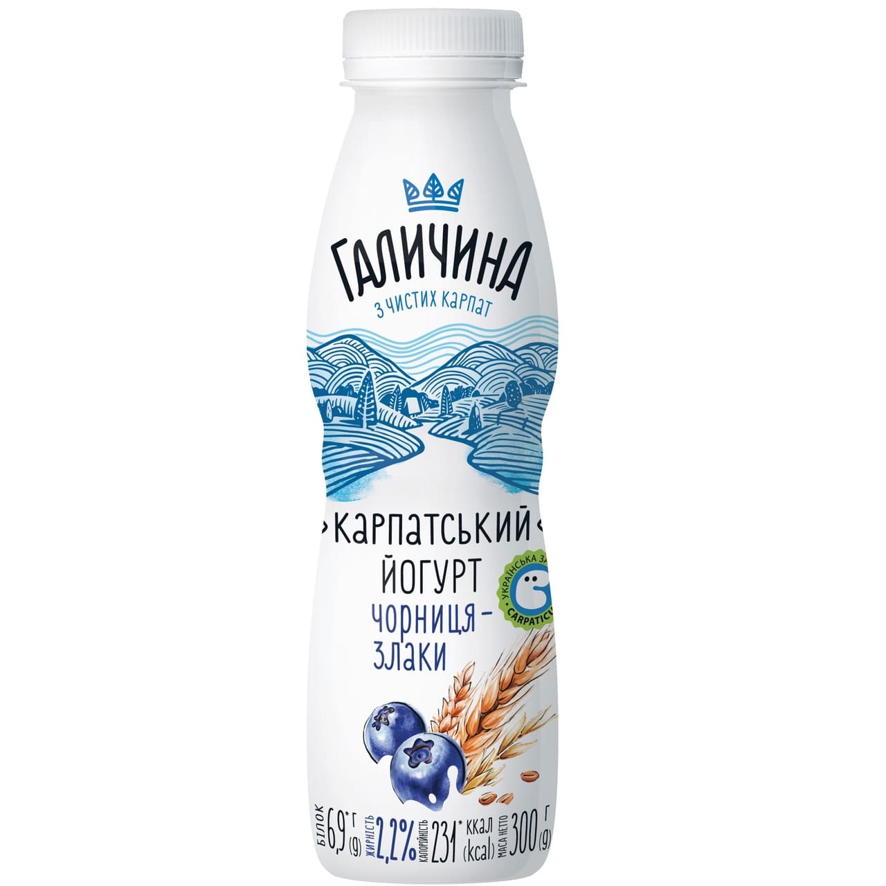 Йогурт «Карпатский» Питьевой 2,2% С Наполнителем «Черника-Злаки»