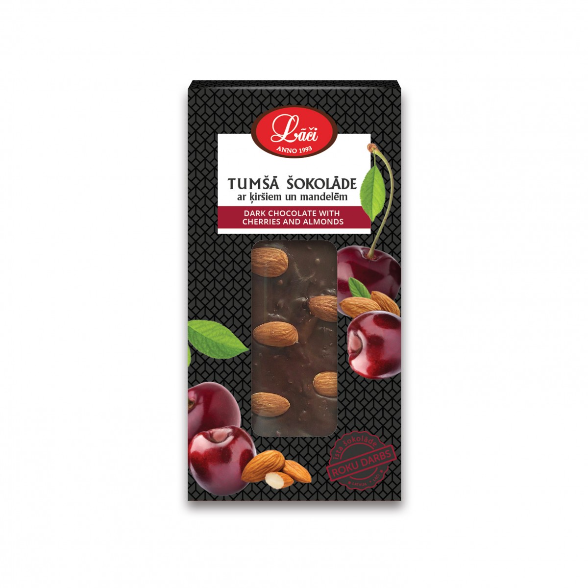 Состав: тёмный шоколад 68% (какао-масса, сахар, какао-масло, эмульгатор: соевый лецитин, натуральный ванильный ароматизатор), МИНДАЛЬ 13%, лиофилизированная вишня 3%, натуральный ароматизатор вишни. Содержание какао в шоколаде не менее 55%.