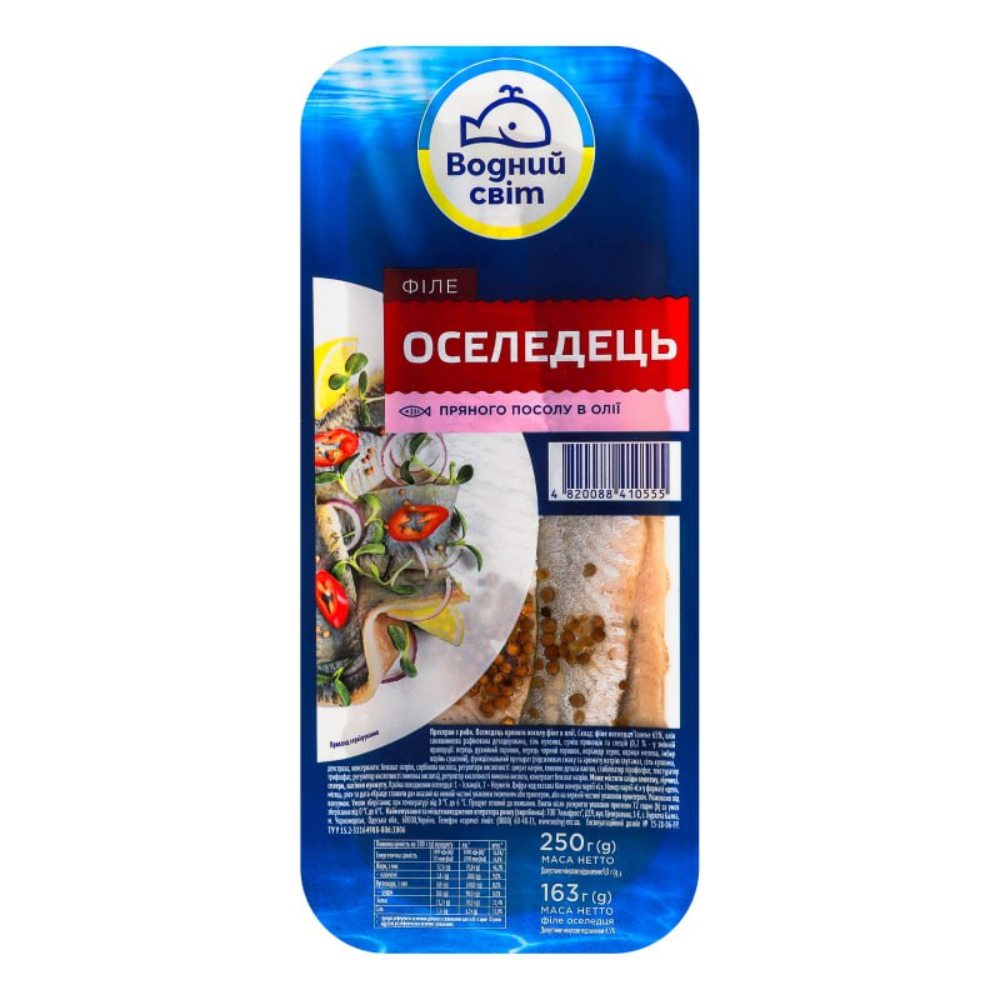 Масса нетто: 250 g. Масса рыбы после удаления масла (филе сельди): 163 g.