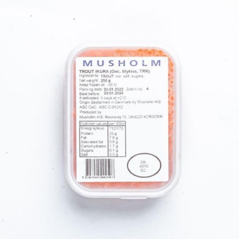 Состав: икра форели (Oncorhynchus mykiss, аквакультура Дании) – 97%, соль.
